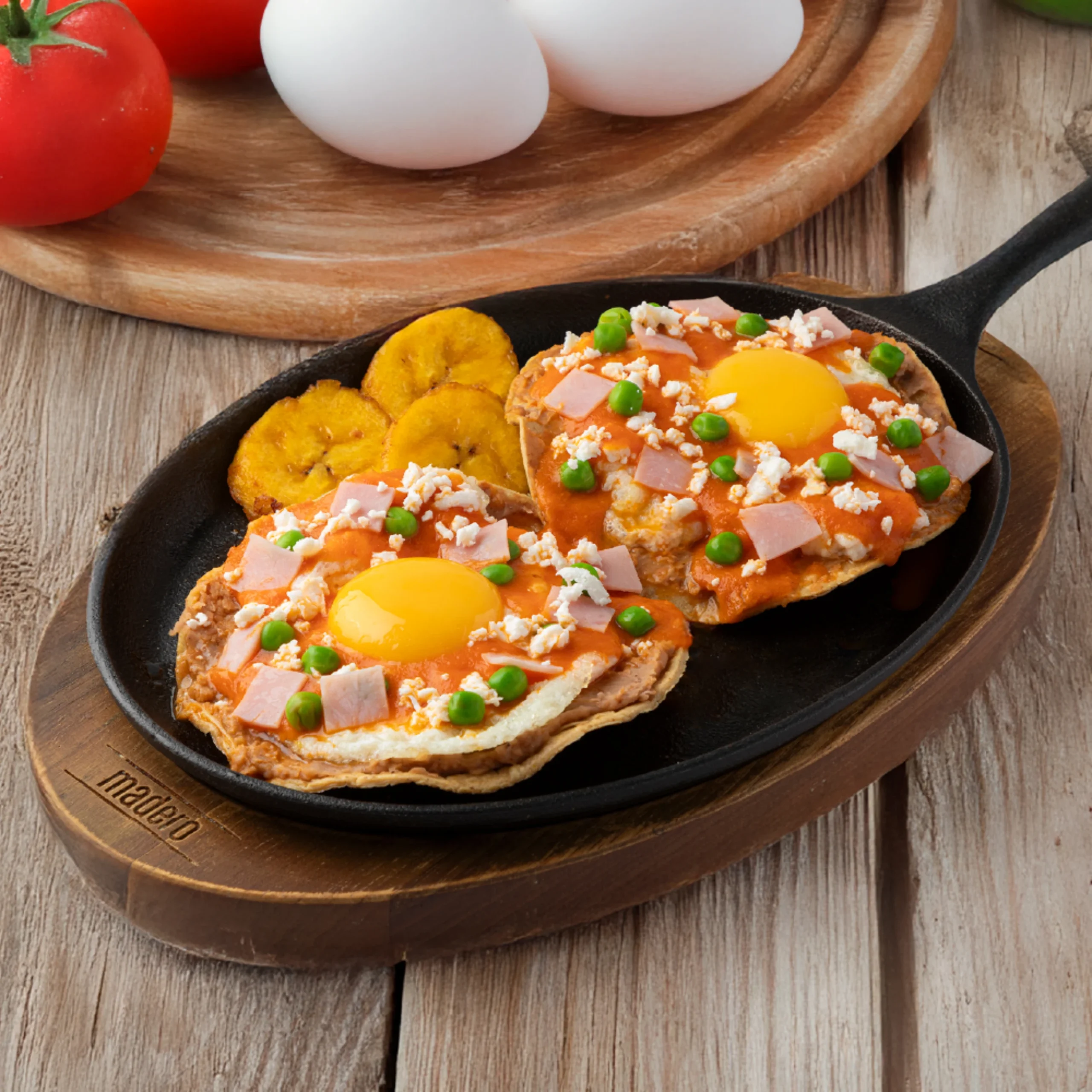 2 pzas. de huevos con 25 g. de jamón de cerdo.
